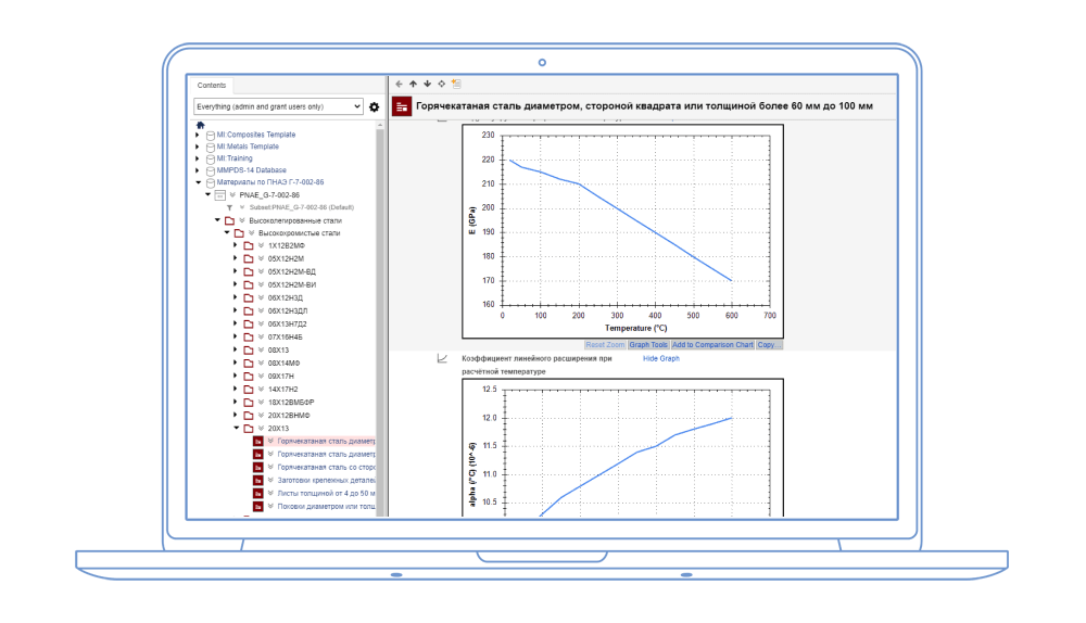 RUSATOMMATERIAL содержит свойства более 350 сортаментов для свыше 100 материалов: